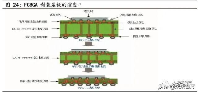 这些例子的 CPU 和 GPU 是大型尺寸的 FCBGA 封装驱动的需求复杂的封装基板的主要例子。