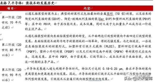 目前,半导体封装处于第三阶段的成熟期与快速增长期,以 BGA/CSP 等主要封装形式开始进入规模化生产阶段。同时,以 SiP 和 MCM 为主要发展方向的第四次技术变革处于孕育阶段。