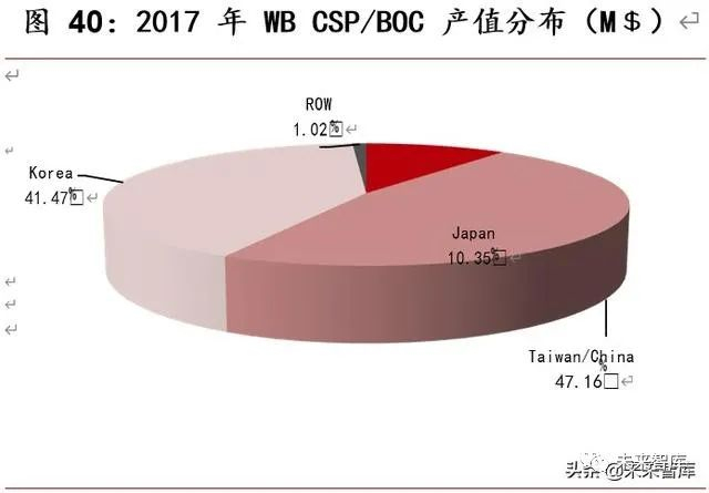 BOC(Board on Chip for DRAM)主要包括 WBBOC 和FCBOC 两种。2018 年 以前,大多数DRAM 设备都采用WBBOC 封装,尤其是在2017 年,三星(Samsung) 推出了超过 35 亿个WBBOC 封装。