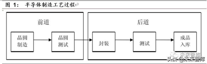 半导体器件制作工艺分为前道和后道工序,晶圆制造和测试被称为前道(Front End)工序,而芯片的封装、测试及成品入库则被称为后道(Back End)工序,前道和后道一般在不同的工厂分开处理。