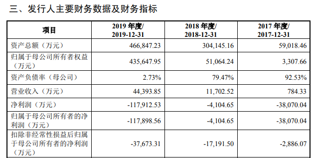 从营收来看,寒武纪近年来取得快速增长,2017年至2019年公司主营业务收入分别为784万元、1.17亿元和4.44亿元。不过2017年至2019年寒武纪为连续三年亏损,期间公司净利润分别亏损3.8亿元、4104万元和11.79亿元。