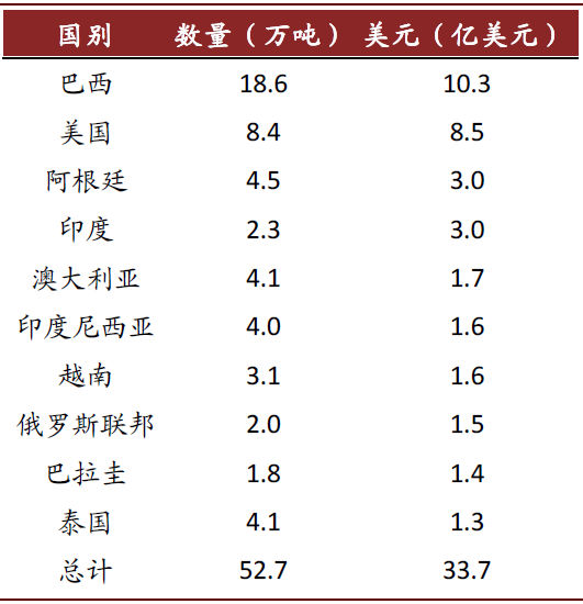 图表: 2019年前三季度中国农药出口目标市场TOP 10