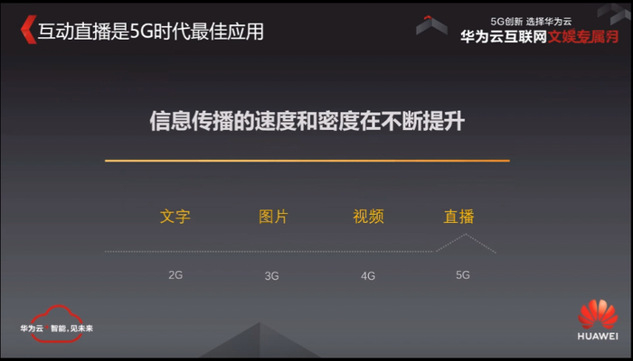 我们认为互动直播是5G时代最佳的应用。纵观整个人类现代信息交流历史可以发现,最先进的通讯和信息技术,都被用在信息的加工和传播上,而信息加工和传播的速度和密度都在不断的提升,每一次技术的迭代也是围绕着这几个特点来展开。当数据能够在地域和地域之间连通的时候,就产生了催生了互联网时代,这正好是与移动通信的2G和3G时代是重合的。现在人工智能的能力正在渗透到各个行业里面,人工智能时代也将全面到来,正是我们当下的5G的时代。