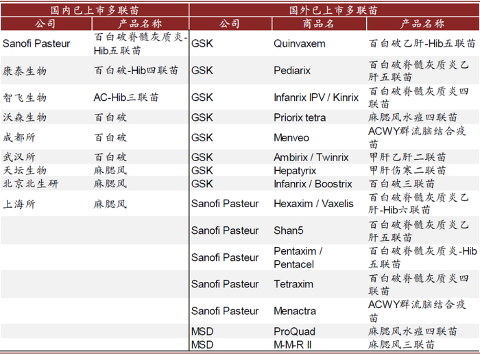 图表: 国内外已上市多联苗对比