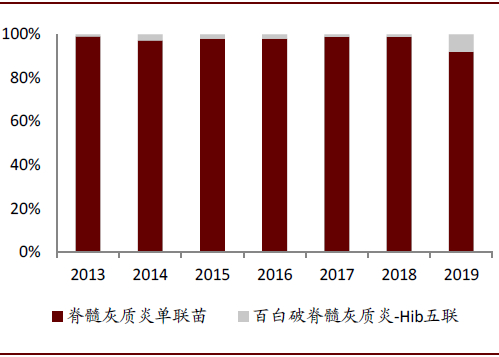 图表: 国内脊髓灰质炎多联苗和单联苗批签发量占比