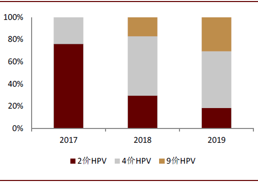 图表: 国内不同类型HPV疫苗批签发量占比