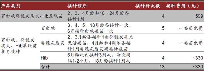 注:上述费用未考虑医疗机构接种服务费,价格为2019年平均中标价