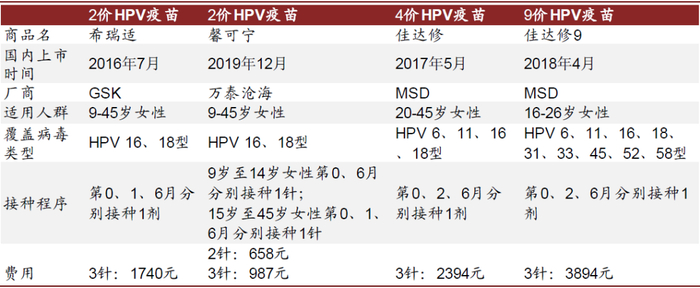 图表: HPV疫苗对比