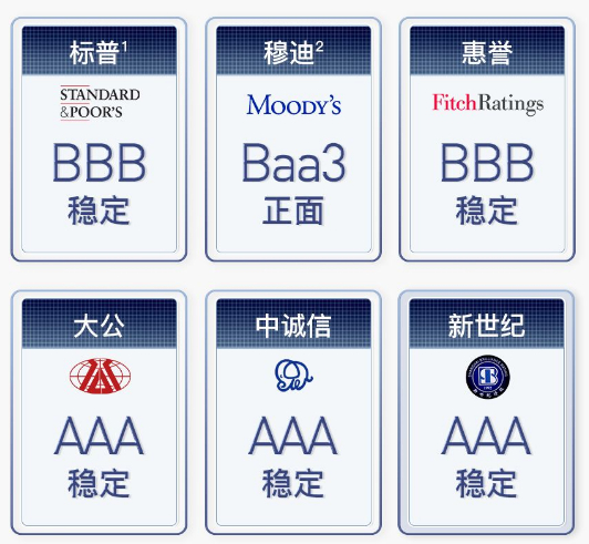 龙湖集团凭借扎实的财务盘面和出色的能力,在良好的信用纪录、审慎自律的财务表现、稳健的业务发展方面进一步获得认可。2019年以来,穆迪上调龙湖集团展望为正面,标普上调评级至BBB,成为国内唯一一家获得全部三家国际信用评级机构(标普/穆迪/惠誉)投资级评级的民营房地产企业;同时,大公国际(AAA)、中诚信证评(AAA)、新世纪(AAA)展望均为稳定,整体龙湖继续保持民营房企的最佳信用评级。