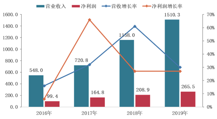 图:2016-2019年龙湖集团营业收入、净利润情况