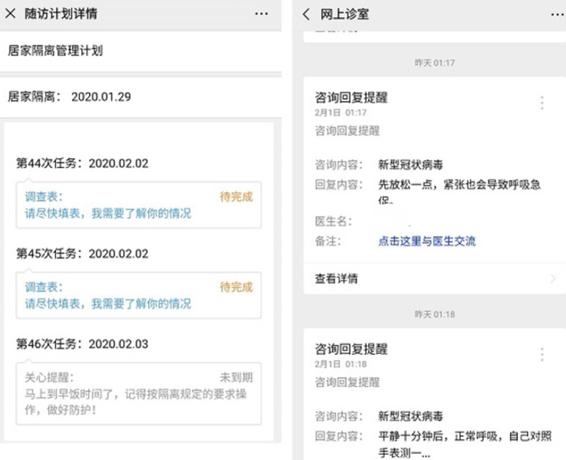 医生在网络平台跟踪隔离人员情况,并提供咨询建议。