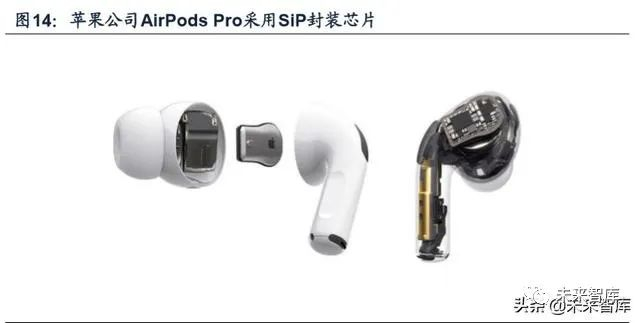 SiP可充分满足智能手表、TWS耳机、眼镜等可穿戴设备小型化和高度集成化 的需求,此封装技术逐渐被各大厂商采用。例如,从第一代 Apple Watch 发布以来, 每一款都采用 SiP 封装集成应用处理器、电源管理芯片等零组件;2019 年 10 月, 苹果推出新款耳机 AirPods Pro,首次搭载采用 SiP 封装的新 H1 芯片,拥有多达 10 个音频核心,内部集成 SoC、音频编码器、数据转换器。