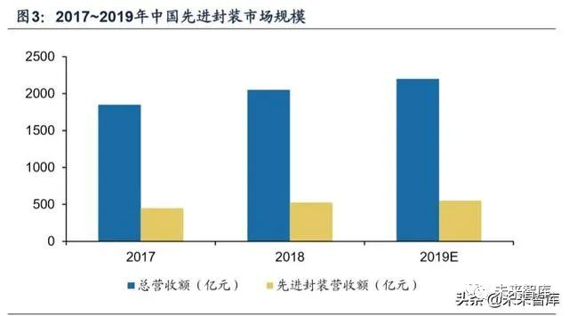 中国先进封装市场占比不断提升,仍然存在上升空间。根据DRAMeXchange统 计,2018年中国先进封装营收约为526亿元,仅占中国IC封测总营收的25%,低于 全球41%的比例。2018年中国封测四大龙头企业长电科技、通富微电、华天科技和 晶的先进封装产值约110.5亿元,约占中国先进封装总产值的21%。根据Yole统计, 由于未来半导体市场景气度较高以及政府投资先进封装项目驱动,预计中国的先进 封装收入在2020年将达到46亿美元。