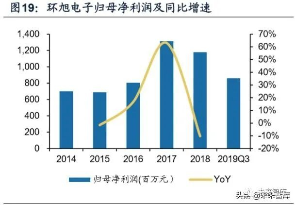 公司营收保持稳定增长,归母净利润呈略微下调趋势。公司营收从2014年的 158.73亿增长到2018年的335.5亿,归母净利润从2014年的7.01亿,增长到2018年 11.8亿。公司2018年下半年进入行业旺季,消费电子类产品受益主要客户新产品发 布,产品销售向好带动公司营业收入增长,同时工业类产品获得新订单、计算机类 产品销售增加,使得公司整体营业收入保持稳健增长。