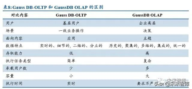 数据库的生态体系和迭代进度决定产品后续发展。Oracle 数据库的垄断地位是随着 WINTEL 体系在 PC 时代逐步建立的,而 AWS 数据库则是依托云计算和互联网公司对数据 库的需求逐步推广使用的。华为 Gauss 数据库随着华为鲲鹏产业发展带来的华为 IT 架构发 展,容易形成整体耦合性进而有望逐步被推广使用。对比三款数据库的使用架构看,Oracle 和 AWS 仍主要支持 X86,而 Gauss 可以支持 X86、ARM 等异构场景,可适用于更多的计 算场景。从现阶段的客户看,Oracle 客户多为传统大型企业,AWS 以互联网公司为主,Gauss目前主要在银行、电信等行业存在用户,客户数量存在劣势。随着鲲鹏体系的推广和客户数量的增多,客户反馈的加速,Gauss 的迭代和优化进程有望加速。因此,我们认为鲲鹏体 系和 Gauss 数据库发展为相辅相成的关系,随着产业生态进一步发展,Gauss 的用户也有望 随之增加。