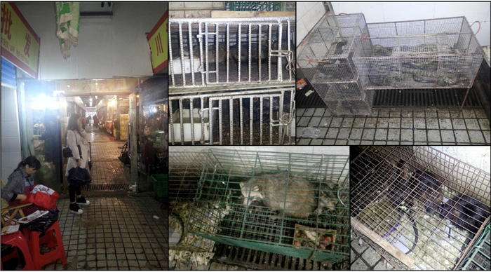 此前的观察显示,第一批报告的COVID-19病例和武汉的华南海鲜野生动物市场有关联。值得一提的是,张永振、霍尔姆斯等人曾在2014年亲身探访过该市场,霍尔姆斯提供的一张照片显示,当时该市场即出售野生动物。