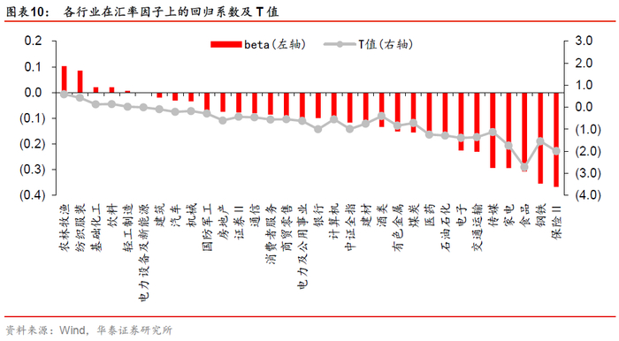 3、上游资源、中游材料板块中多为进口导向性行业,汇率因子上行(美元升值)导致进口成本提升,盈利水平下降,因而受到的负面影响更显著。