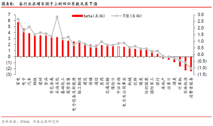 增长因子对行业的影响主要是从盈利端来考虑,当增长因子上行时,企业盈利回暖,此时盈利弹性更大的行业往往表现较好,通常包括上游资源、中游材料、可选消费等板块,其中,石油石化、家电、汽车三个行业与增长因子走势有显著的正相关性。对增长因子暴露为负的行业(一定程度上可以理解成逆周期行业)包括:消费者服务、农林牧渔、计算机、酒类、证券、房地产,主要集中在大金融、TMT、必须消费板块。