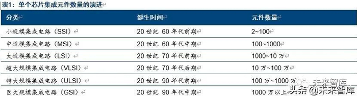 自问世以来,单个芯片上集成的元件数量不断增长。1965 年英特尔(Intel)创始人之一戈登摩尔(Gordon Moore)提出,在价格不变的情况下一块集成电路上可容纳的元器件的数目将每 18-24 个月增加一倍,性能也将提升一倍,这就是著名的摩尔定律。自 20 世纪 60 年代到 21 世纪的前十几年,摩尔定律完美诠释了集成电路的发展历程。