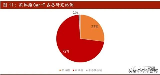 实体瘤约占了所有人恶性肿瘤的 90%,征服实体瘤才能为更多患者带来希望。因此,实体瘤的 Car-T 方案一直是学界和研究者希望有所进展的领域。截至 2020年 3 月 15 日,全球所有开展的 Car-T 实验中,针对实体瘤的试验数约占到总实验的 27%左右。