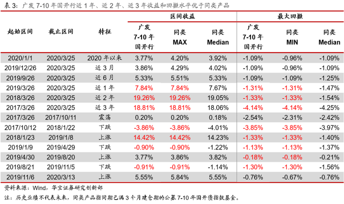 长久期利率债投资正当时。当前疫情冲击加剧经济下行压力,各国央行货币政策进一步放松,美联储降息至零并开启新一轮量化宽松政策。长期来看,全球货币宽松背景下,长久期利率债能更大程度受益利率下行,短期来看疫情恐慌之下利率债的避险属性也进一步凸显。另一方面,从资产配置的角度来看,长久期利率债作为低风险品种能有效分散组合投资风险,平滑产品净值波动。广发7-10年国开行能够有效跟踪相应的财富指数,且历史业绩优于同类产品,是较好的长久期利率债投资工具。