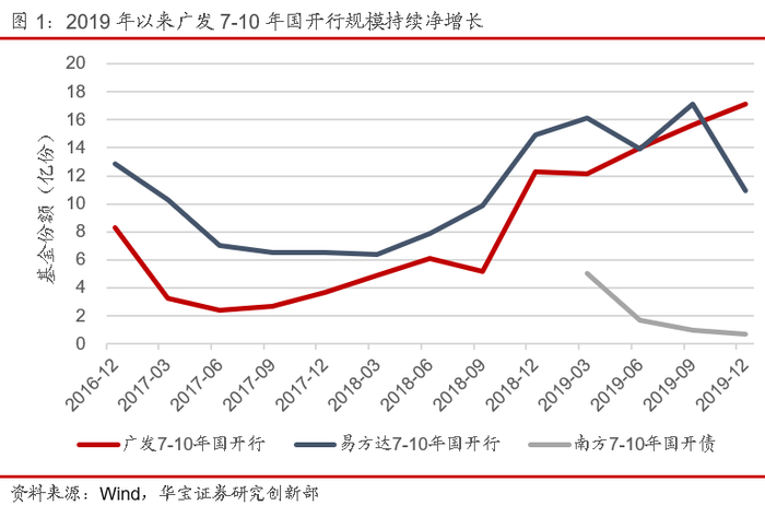 当前公募市场共有5只跟踪中债7-10年国开行指数的基金,其中广发7-10年国开行基金截至2019年底规模达到18.66亿元,是目前同类产品中规模最大的7-10年国开行指数基金。