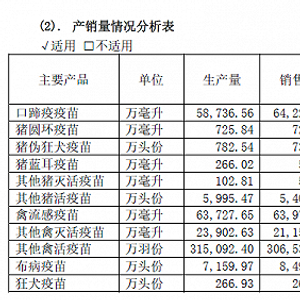 年报显示,生物股份主要从事兽用生物制品的研发、生产与销售,产品种类涵盖猪、禽、反刍和宠物类四大系列100余种动物疫苗。
