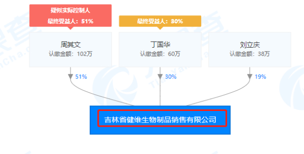 吉林省健维生物制品销售有限公司(“健维销售公司”)股权穿透图(来源:天眼查)