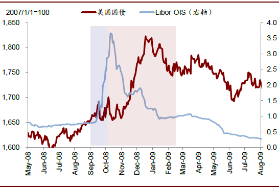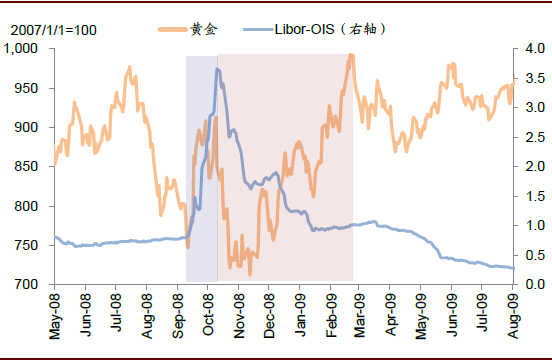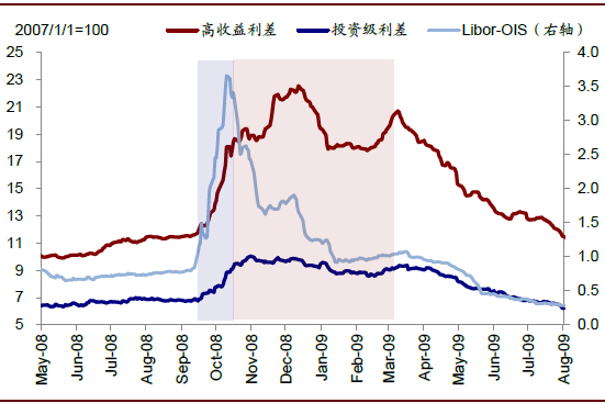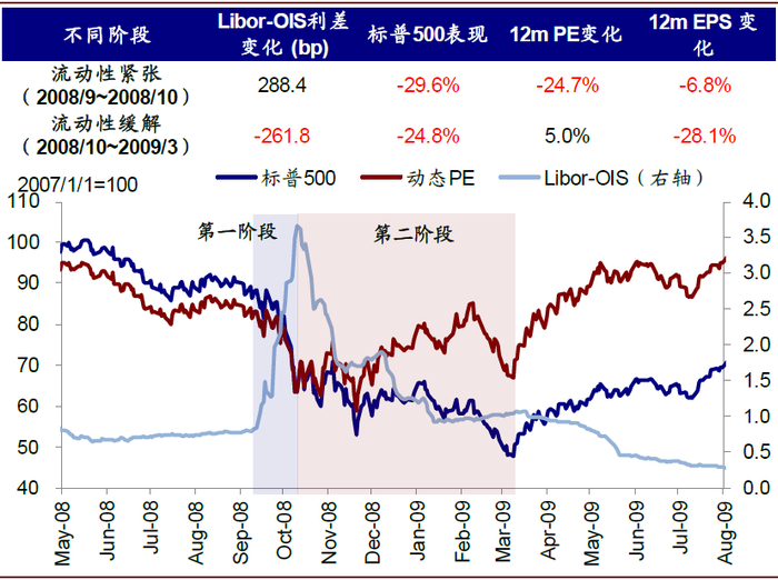图表: 2008年流动性紧张和缓解阶段对应的市场表现