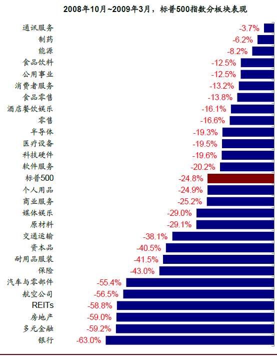 图表: 2008年金融危机两个阶段标普500的板块表现