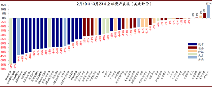 图表: 除美元、美债等少数资产外,全球主要市场和资产普跌