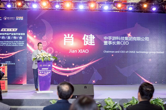 3月29日,金庸“射雕三部曲”全产业链开发项目签约发布会在无锡国家数字电影产业园举行。无锡国家数字电影产业园、恒信东方、中手游进行了金庸“射雕三部曲”全产业链开发合作签约,恒信东方获得金庸全球唯一授权的,且是全球首个金庸武侠线下体验馆落地园区,并吸引两家合作上市公司恒信东方文化股份有限公司(300081.SZ)、中手游科技集团有限公司(0302.HK)的华东区总部同时入驻。这是无锡经济全面进入有序运行阶段以来,引入的首批重大数字影视文化标杆项目。江苏省委宣传部常务副部长、省新闻出版局(省版权局)局长、省电影局局长(兼)焦建俊出席并讲话,滨湖区委书记许峰,恒信东方董事长孟宪民,中手游董事长兼CEO肖健以及维塔工作室创始人理查德·泰勒爵士分别致辞。江苏省广播电视局电视处处长谭松枝,无锡市委常委、宣传部长袁飞,分管副市长刘霞,市政府副秘书长严健媛,市委宣传部常务副部长、市新闻出版局(市版权局)局长(兼)陆惠玲,滨湖区区长陈锡伦,滨湖区委常委、宣传部长倪守红,副区长徐新宇等领导出席活动。滨湖区委常委、山水城管委会主任宋晓主持发布会。