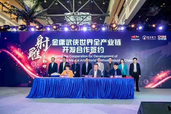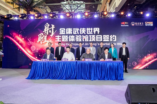 金庸“射雕三部曲”全产业链开发项目主要包含金庸“射雕三部曲”主题体验馆、金庸“射雕三部曲”沉浸式戏剧及主题商业;金庸《神雕侠侣》动画影视剧;金庸“射雕三部曲”移动游戏;金庸“射雕三部曲”主题衍生品开发。未来,园区与恒信东方、中手游还将进一步合作,园区将与恒信东方对我国四大名著,以及三方将通过对中手游持有的《仙剑奇侠传》等IP内容进行深度合作开发,形成“虚拟+现实、数字+创意、互联网+文旅”的独特发展模式。园区将打造集影视、网红、VR、电竞于一体的场景型娱乐体验新文娱、新商业业态。其中,中手游与恒信东方合作的基于金庸“射雕三部曲“版权的移动端游戏开发项目《新射雕群侠传之铁血丹心》也是首次正式对外公布。