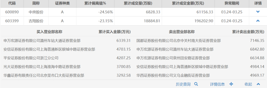 3月24日和25日两个交易日,申万宏源证券有限公司温州车站大道证券营业部在吉翔股份上大买大卖。期间累计买入6339.31万元,累计卖出6842.80万元。此外,华西证券股份有限公司义乌金融街营业部席位也同时在吉翔股份和协鑫集成的龙虎榜上出现。