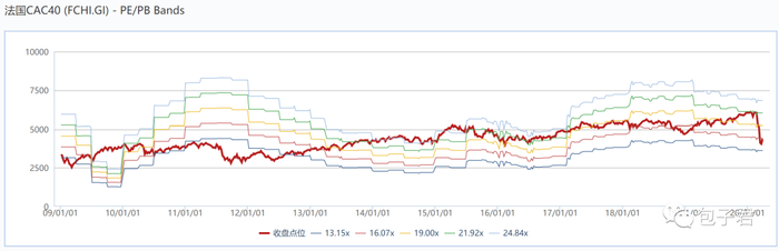 由于新冠疫情影响,法国CAC40指数最近暴跌,暴跌后的法国CAC40估值显得便宜了很多。目前该指数市盈率为15.8倍,市净率1.27倍,指数估值处于历史很低的位置。