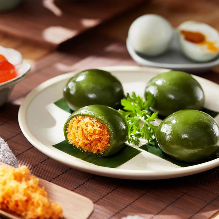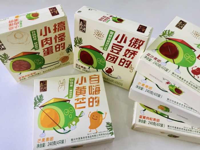 不仅青团皮要清爽软糯,馅料更为考究。这款青团共有芒果、豆沙、蛋黄肉松、海盐花生四款味道可选。