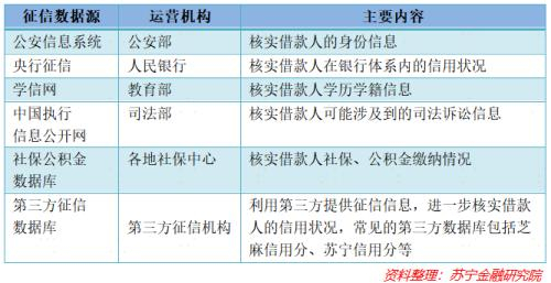 所谓交叉验证,即通过第三方的数据源,对客户填写的资料进行确认。常见的征信数据源包括: