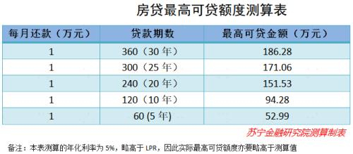 在银行眼里,客户每月可还贷额度仍然是1万元,其中有5000元要用来还车贷,因此,能够用来还房贷的额度只有5000元,通过查测算表(即成比例地放缩表中数据),因为房贷月供减少了一半,因此,20年房贷的可贷额度也减少一半,即75.76万元。