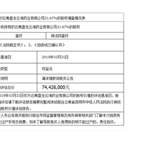 不过,《每日经济新闻》记者注意到,这家“明星”药企的背后股东目前似乎遇到了些麻烦。阿里拍卖近日发布的信息显示,盘龙云海间接第一大股东焦少良持有的云南盘龙云海药业有限公司(以下简称云南盘龙)的部分股权将被司法拍卖。