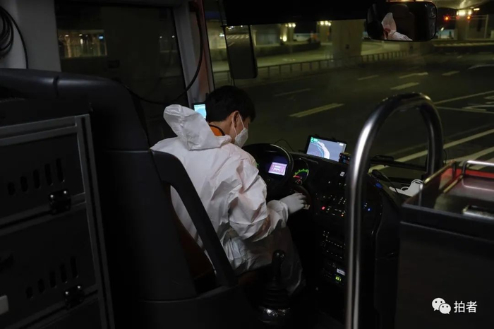 ▲当地时间3月24日凌晨,穿防护服的司机准备转运我们到隔离点。
