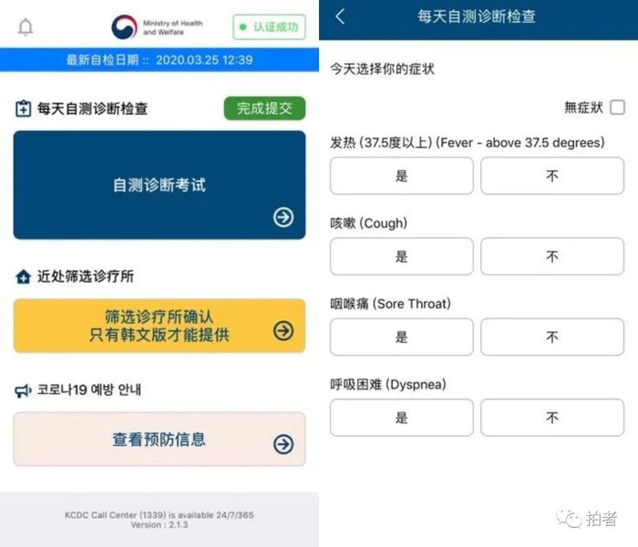队伍沿途设置了许多提示牌,上面用中英韩三国文字写着韩国疾病管理本部发布的公告:所有入境者都有义务安装“自我诊断手机app”,自入境之日起14天内,每天通过app报告自身健康状况。
