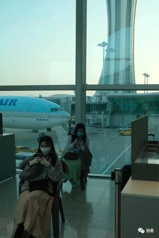 到达2号航站楼的时候,离飞机起飞还有两小时,大韩航空柜台没有人排队,值机、过海关、安检,全程畅通无阻。进入候机大厅后,我才发现乘坐这架航班的人并不少,目测大约90%以上是说着韩语的亚洲面孔,各自戴着口罩等候登机。仿佛受到集体无意识的催眠,我也拿出了此前购买的口罩戴上。