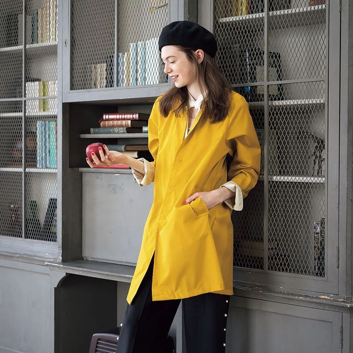 日本设计师紧跟国际潮流,针对亚洲女性的身材,将防雨面料和风衣相融合,设计出了“防雨风衣”。