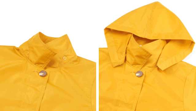 层经过精心地裁剪和设计,最终将“防雨”和“时尚”完美结合,让水滴落在衣服上能够自然滑落不会轻易被浸湿。