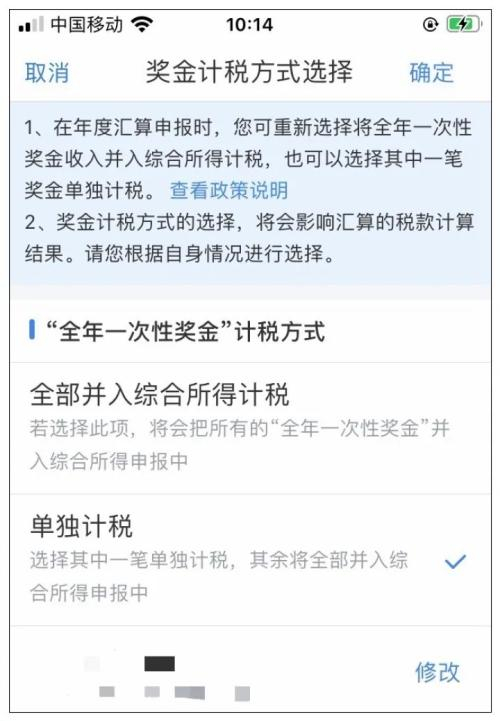 余海涛说,年终奖具体选哪种方式计税,纳税人不妨自己对比一下,在收入中的工资薪金界面可以更改选择。