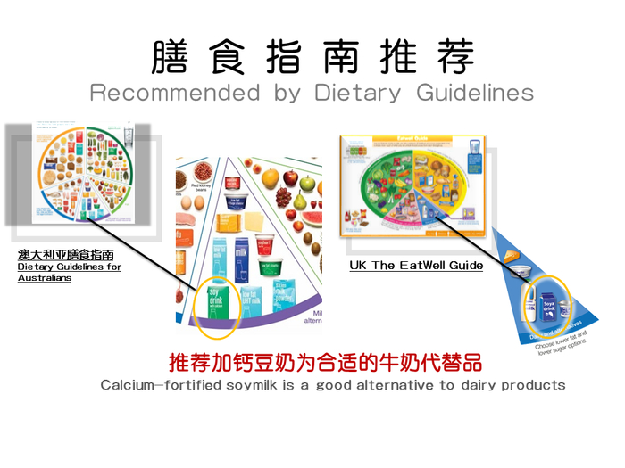 《澳大利亚膳食指南(2013)》指出,食用大豆食品可降低总胆固醇和低密度脂蛋白胆固醇,建议可用强化钙的豆奶作为牛奶的替代品。