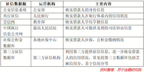 所谓交叉验证,即通过第三方的数据源,对客户填写的资料进行确认。常见的征信数据源包括: