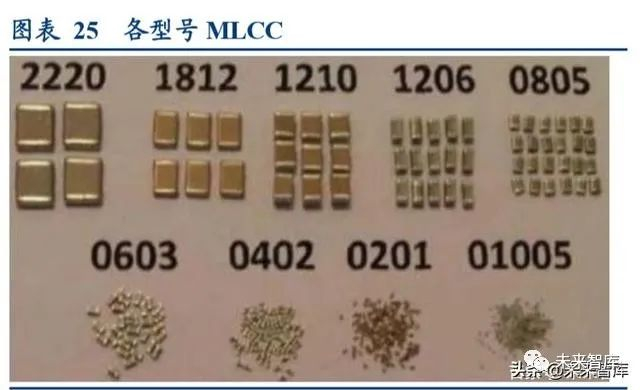 陶瓷电容未来的发展方向是微型化和大容量化。由于下游电子产品逐渐朝着小型化方向发展,促使上游的陶瓷电容 器朝着微型化发展。2008 年消费类智能手机使用的 MLCC 基本以 0402 尺寸系列产品为主,2016 年发展为以 0201 尺寸为主,不久将以 01005 系列产品为主。要想在保证甚至提高电容器的性能的前提下,把电容器做得更小,需要 将 MLCC 的每层介质做得更薄或者增加叠层的层数。陶瓷粉末是 MLCC 的核心原材料,粉末的纯度、微细度和颗 粒形状等决定了MLCC能否实现小型化。目前日本公司在陶瓷粉末的制备工艺和MLCC的制造工艺处于全球领先, 已能实现在 2μm 的薄膜介质上叠 1000 层,生产出单层介质厚度为 1μm,容量为 100μF 的 MLCC。我国国内厂 商目前已经具备次高端产品的生产技术,但是在部分特殊型号或特殊要求的产品方面,受制于核心原材料性能或少数关键技术方面的短板,仍然需要通过进口国外产品满足需求。