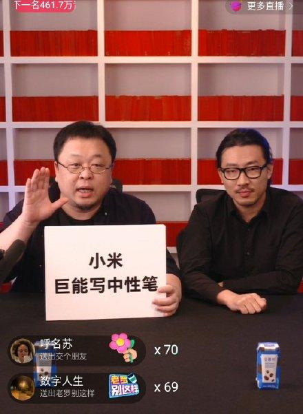 在货品上架之后,小米中国区总裁卢伟冰也现身直播间,为直播间粉丝发出50万元红包。在和卢伟冰的对话中,罗永浩还提到,好久没吵架了,“别人以为我喜欢吵架,其实是那个圈子逼着人吵架。”