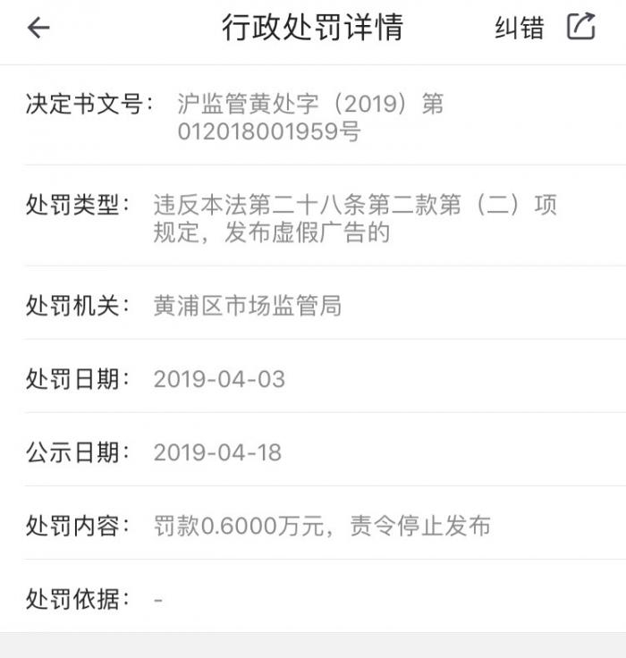 钟薛高食品(上海)有限公司曾因违反广告法被罚款6000元。